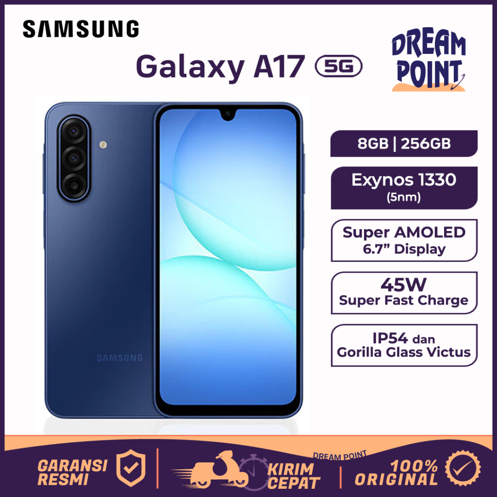 Samsung Galaxy A17 5G Terbaru 2025 RAM 8/256GB 50MP Exynos 1330 FHD+ 90Hz Original Garansi Resmi