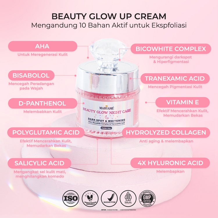 Skincare MARYAME Bundling Beauty Glow Up Cream, Glow Gentle Facial Wash & Beauty Glow Night Care Original BPOM