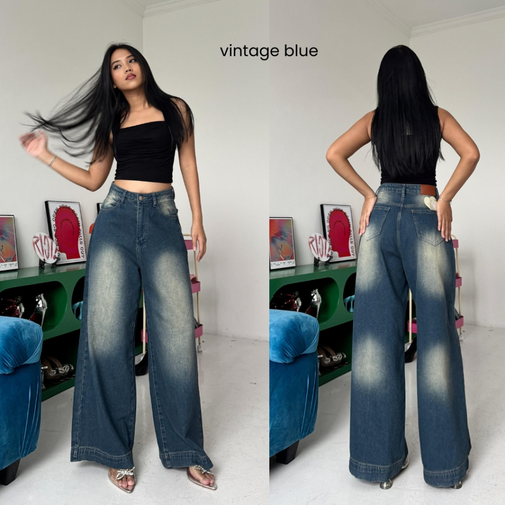 LADOUCE - Brianna High Waist Baggy Wide Jeans Celana Panjang Wanita Denim