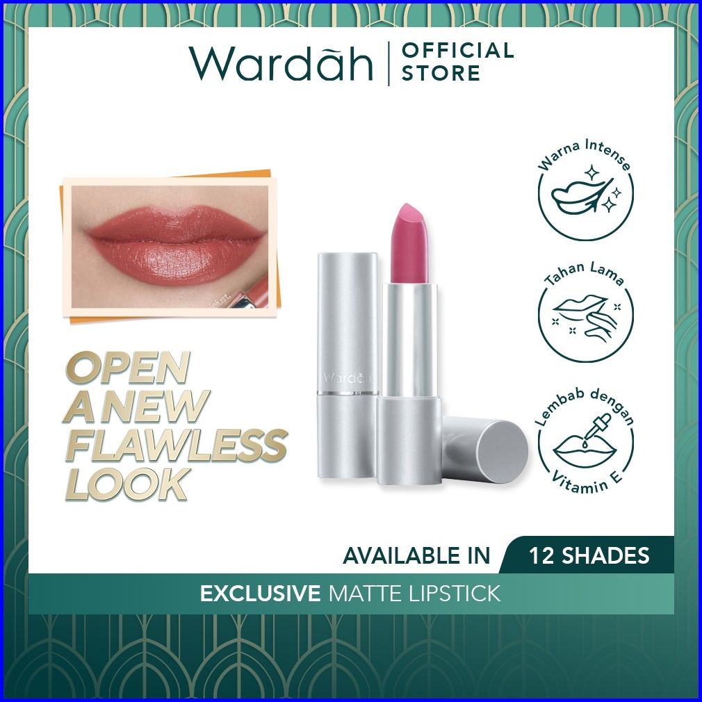 Wardah Exclusive Matte Lipstick - Warna Intense Dalam Sekali Oles - Pigmented Tahan Lama Dengan Hasil Akhir Soft Matte -