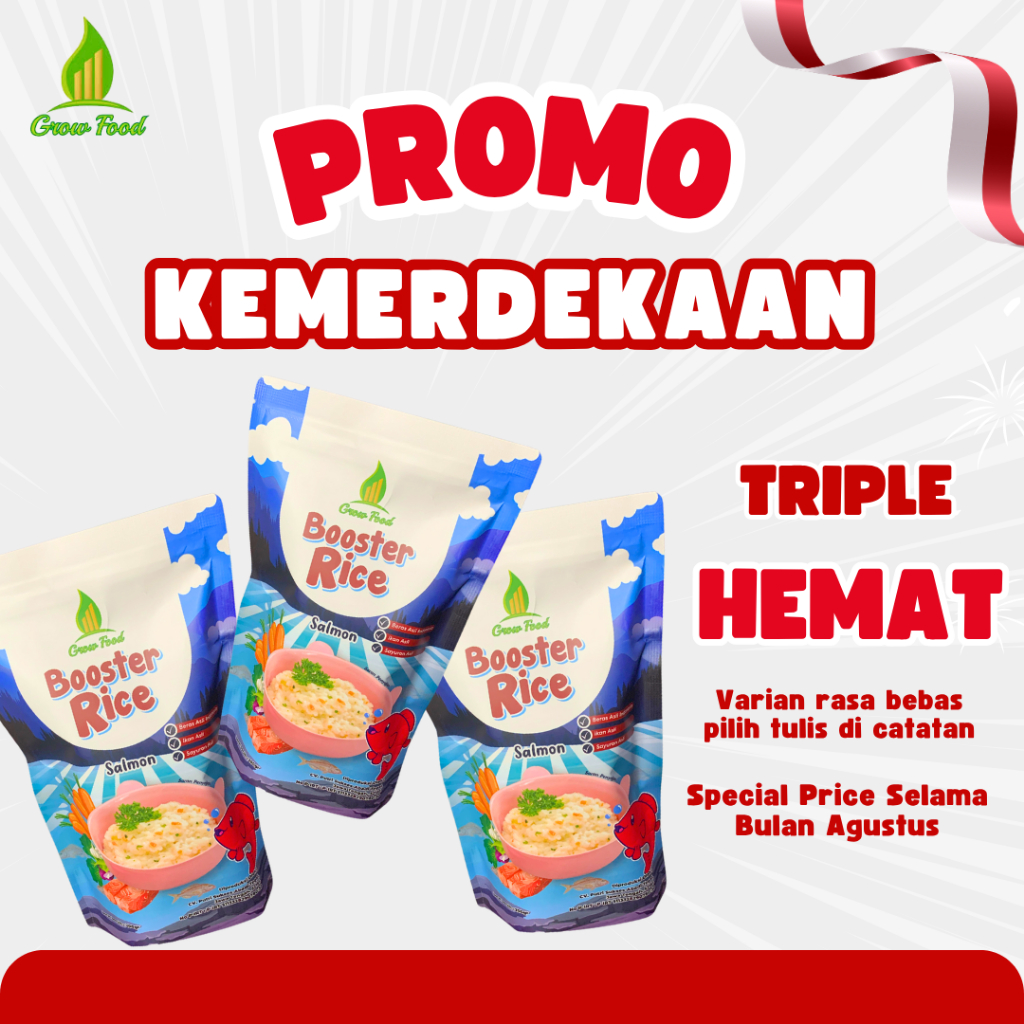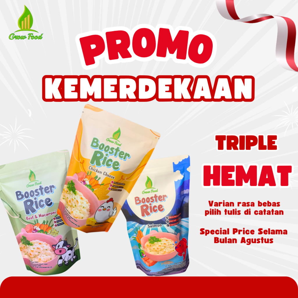 PAKET TRIPLE HEMAT Grow Food BB Booster MPASI Rice Beras Organik Bubur dan Nasi Tim 3 PCS