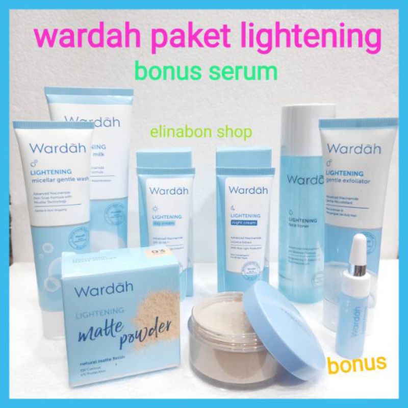 Wardah paket ligtening series pakai bedak tabur(bonus serum 1pcs)