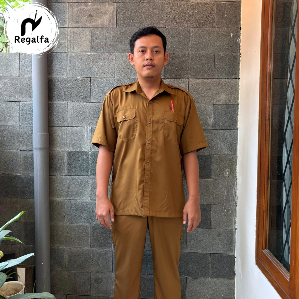 Setelan Baju Seragam Khaki PDH Pemda Pria Resmi Model Lengan Pendek Bahan Katun Dinas PNS ASN Pegawai Negeri Terbaru