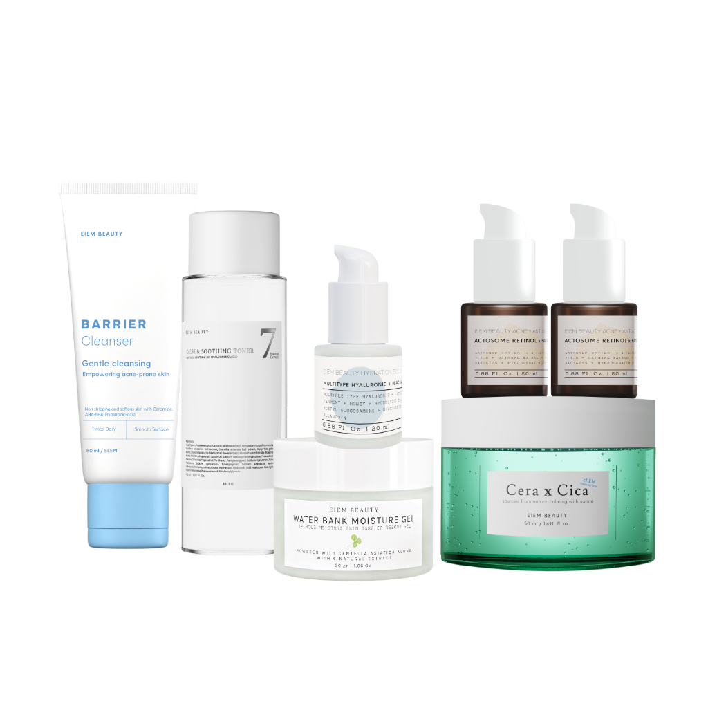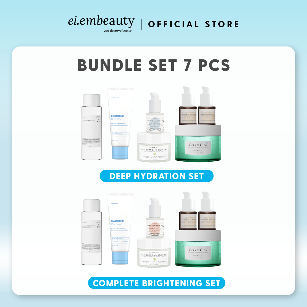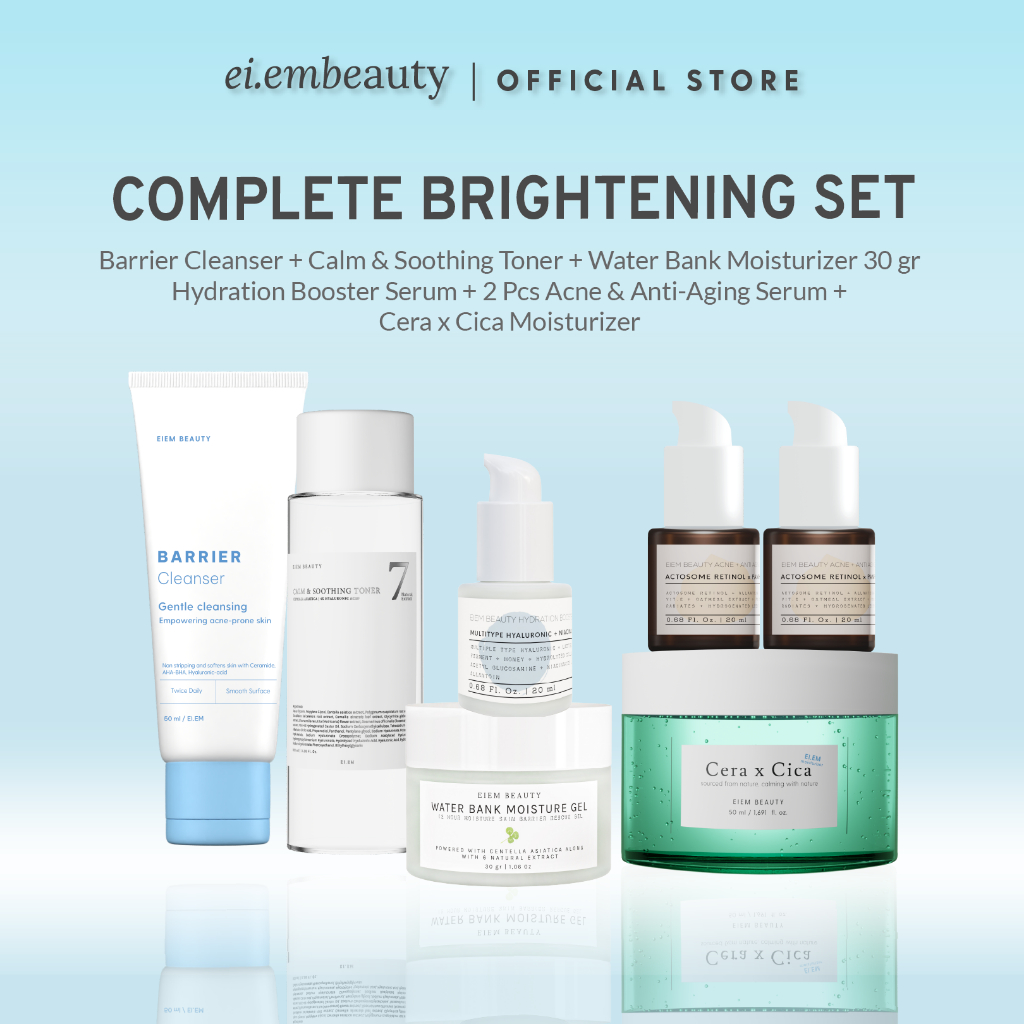 EIEM Beauty 7pcs Set: Water Bank Moisturizer 30gr + Face Wash + Toner + Cera x Cica + Acne Serum 2 pcs + Brightening / Hydration Serum