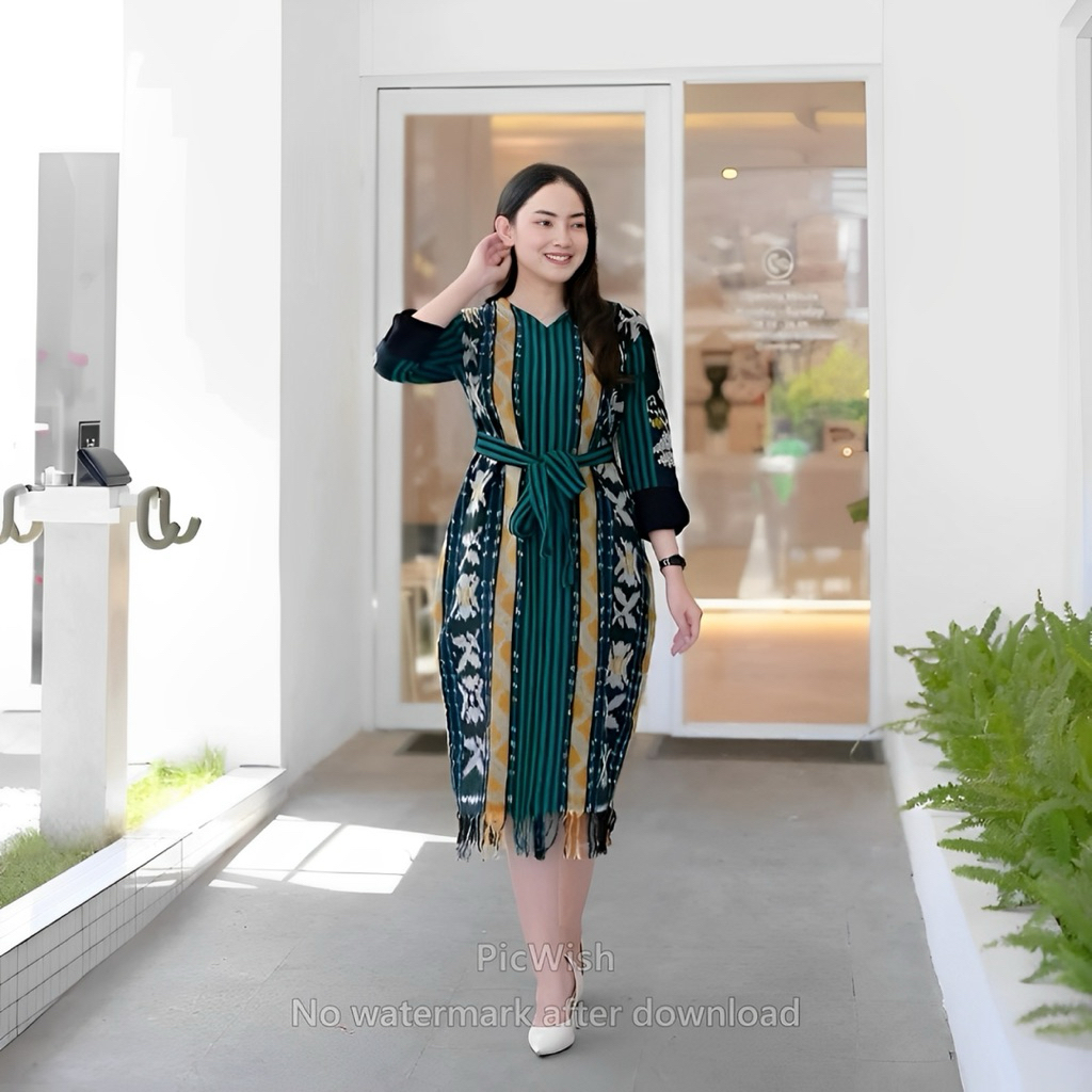 WEAVING DRESS COUPLE PASANGAN KEMEJA DRESS GREEN FLOWERS - DRESS BATIK TENUN MODERN DAN SERAGAM KANTOR