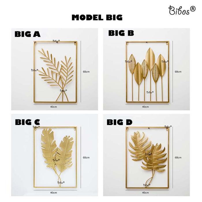 Hiasan Dinding Nordic Aesthetic Besar Wall Decor Daun Leaf Gold Mewah Dekorasi Tembok Frame Metal