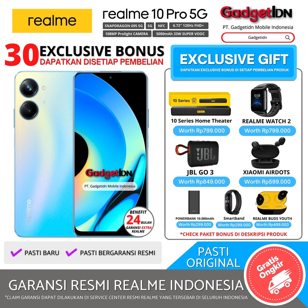 REALME 10 Pro 5G NFC 16/256GB 16/128GB ( 8GB + 8GB Extended Ram ) Garansi Resmi Realme