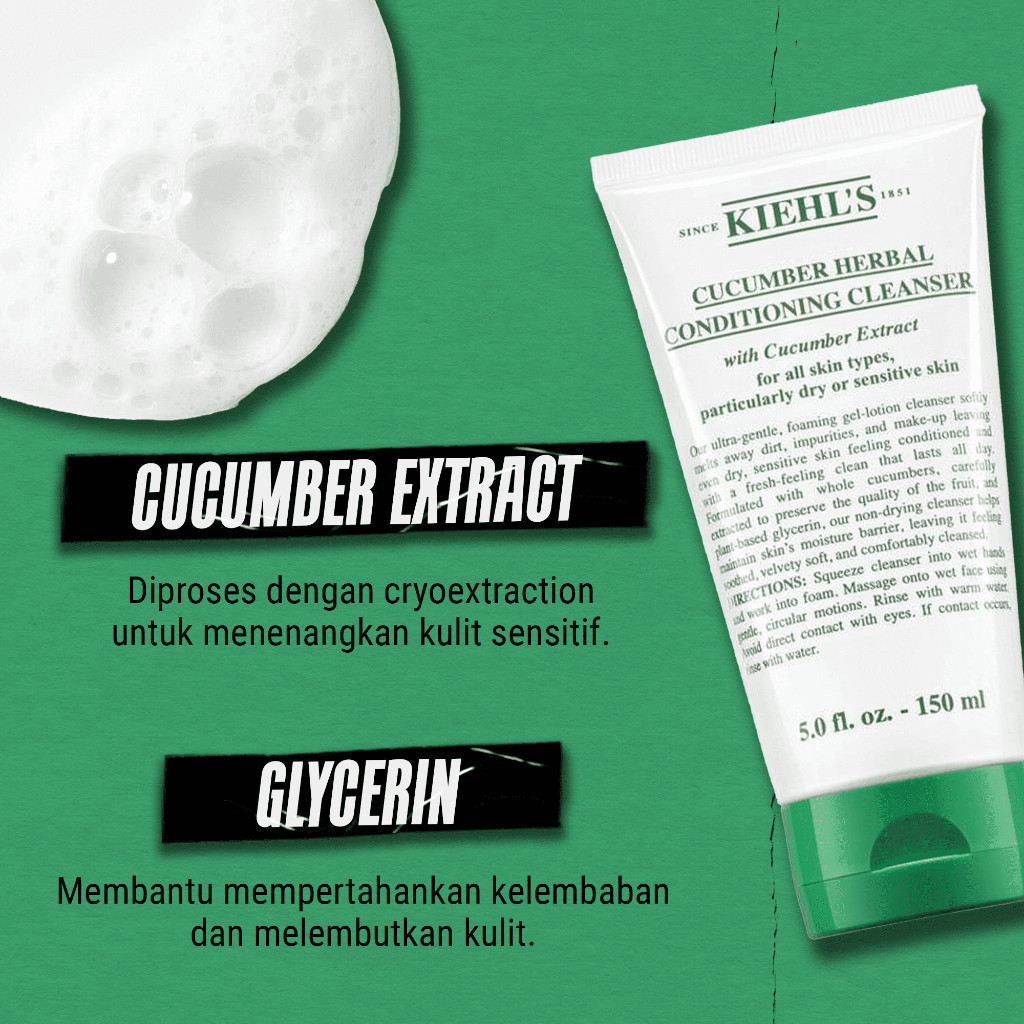 Kiehl's Cucumber Herbal Conditioning Cleanser 150 ML. Pembersih Wajah dengan Ekstrak Mentimun & Glycerin