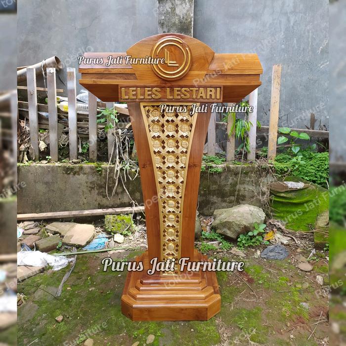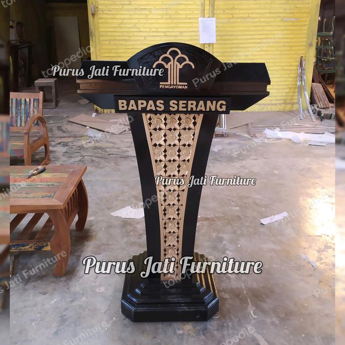 CUSTOM ORDER MIMBAR PODIUM MINIMALIS PLUS LOGO BAHAN KAYU JATI - HITAM