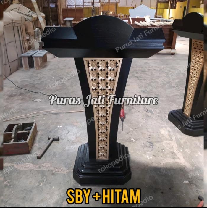 [TERLARIS] MIMBAR PODIUM STAINLESS JATI MINIMALIS TERBARU HARGA MURAH - SBY + HITAM