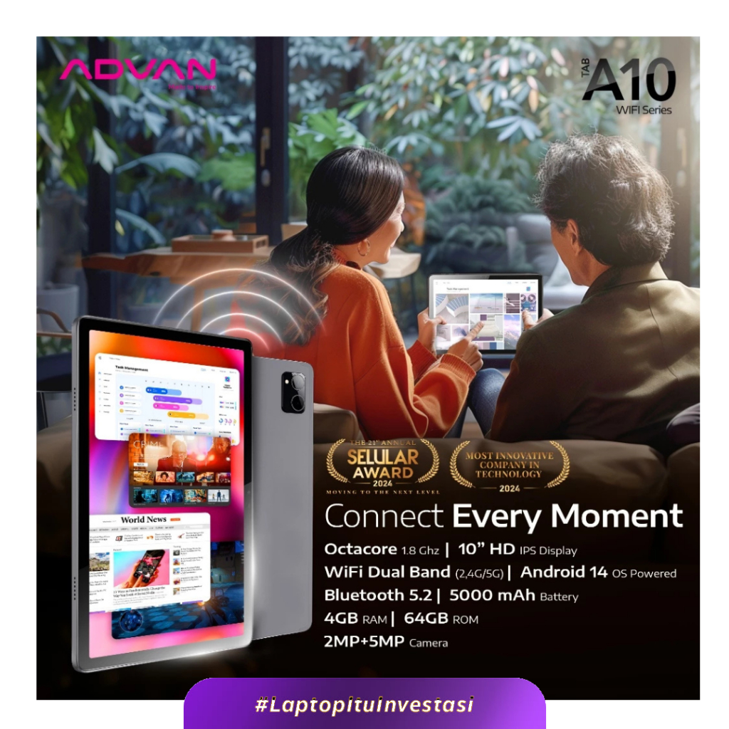 Advan Tab A10 WIFI 4GB/64GB 10.1'' IPS Screen Tablet 5000mAh Android 14 - Garansi Resmi 1 Tahun