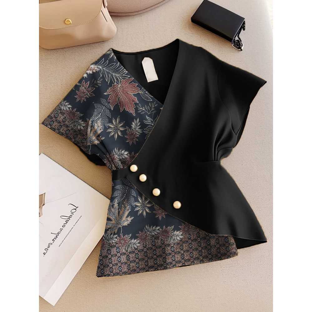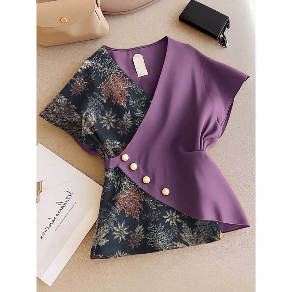 THABI GAIBA T0P BLOUSE WANITA KONDANGAN MOTIF BATIK BAJU WANITA ATASAN KOREAN OUTFIT SIMPEL LENGAN PENDEK BATIK