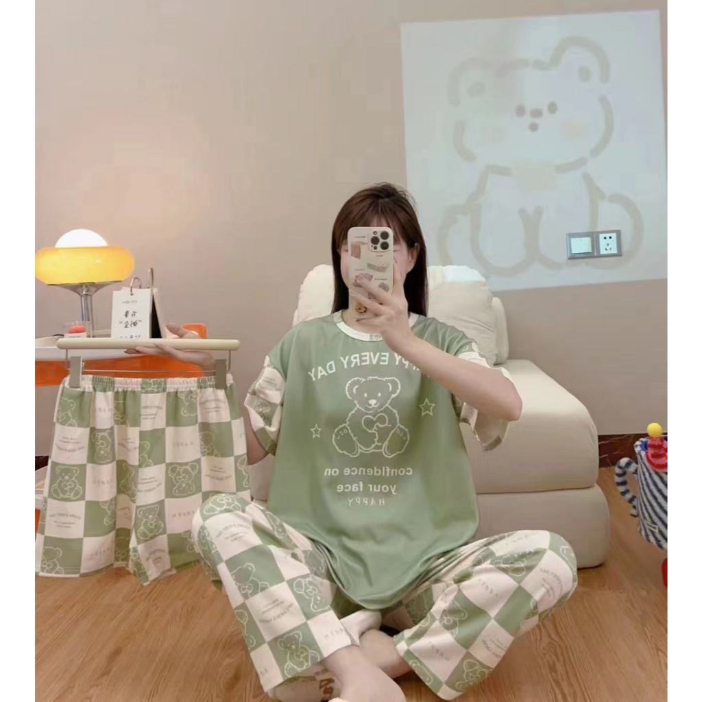 MK Baju Tidur Wanita 3 In 1 Set Piyama Bahan Kaos Celana Panjang Adem Enak Pakai Buat Santai MK 013