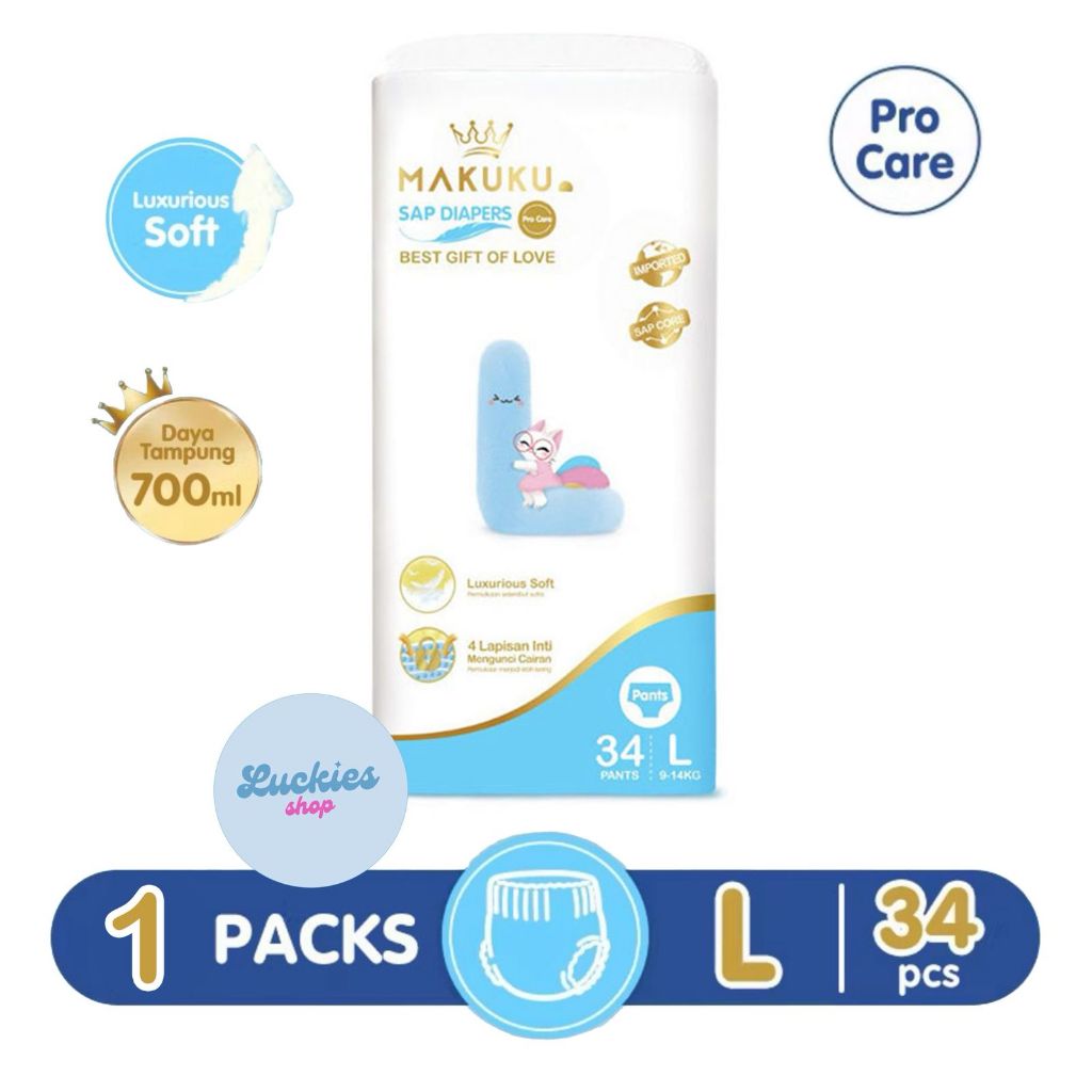 Makuku SAP Diapers Pro Care Pant L34 / L 34 Popok Pamper Pants Celana Bayi Newborn Tipis Extra Dry Anti Gumpal Mengunci