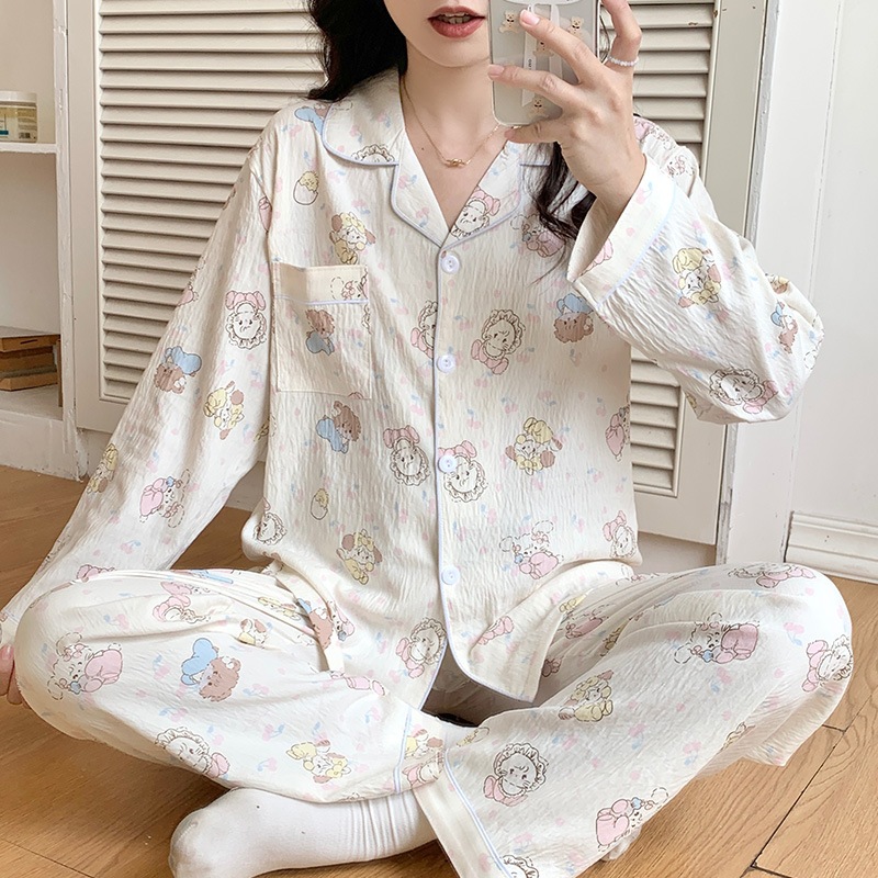 LNR Shop Piyama Baju Tidur Lengan Celana Panjang Import Full Kancing Hidup Dengan Saku Kerah Leher Bentuk V Motif Vintag