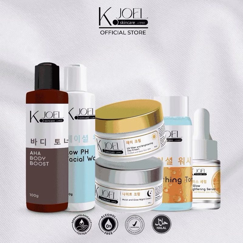 KJOEL - Paket Day Cream + Night Cream + Serum Vit C + Toner Wajah + Facial Wash + AHA Body Boost - [6 In 1]