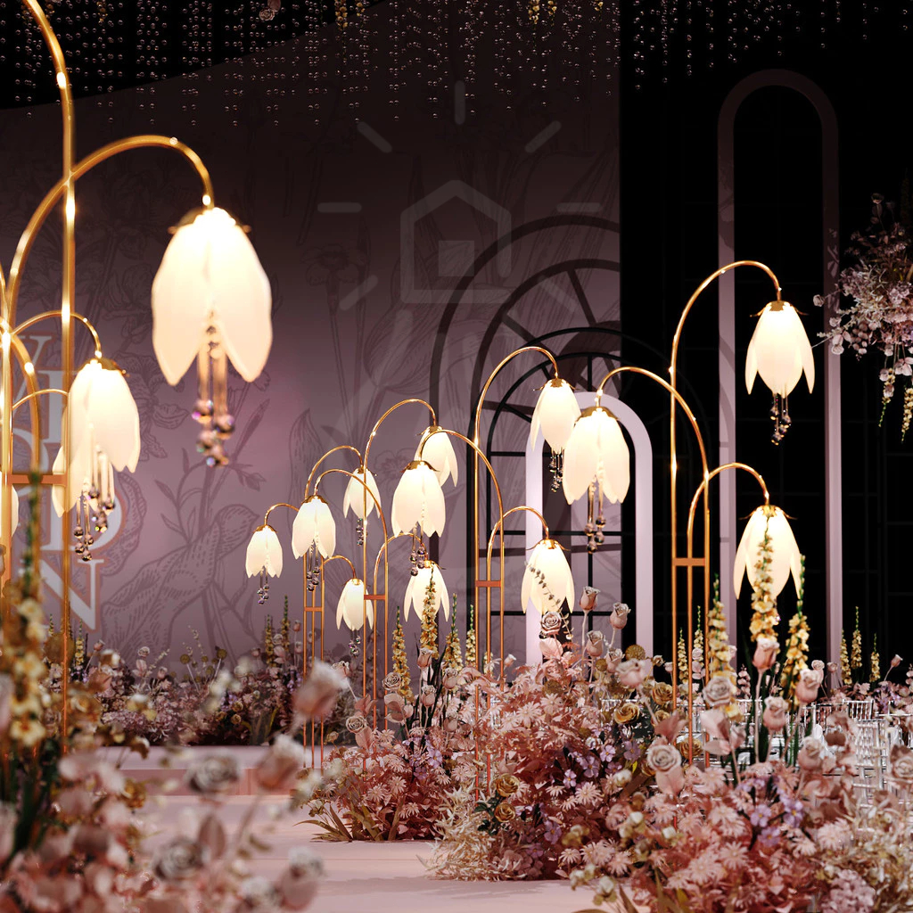 Pernikahan Standing Lampu Dekorasi Bunga 2 Set 150cm Lampu Dekorasi Wedding Led Mewah Pelaminan figh