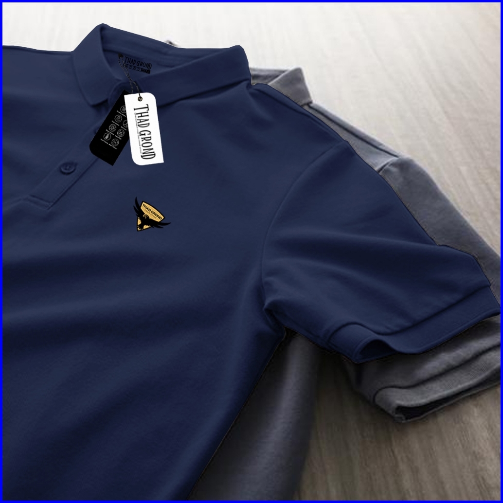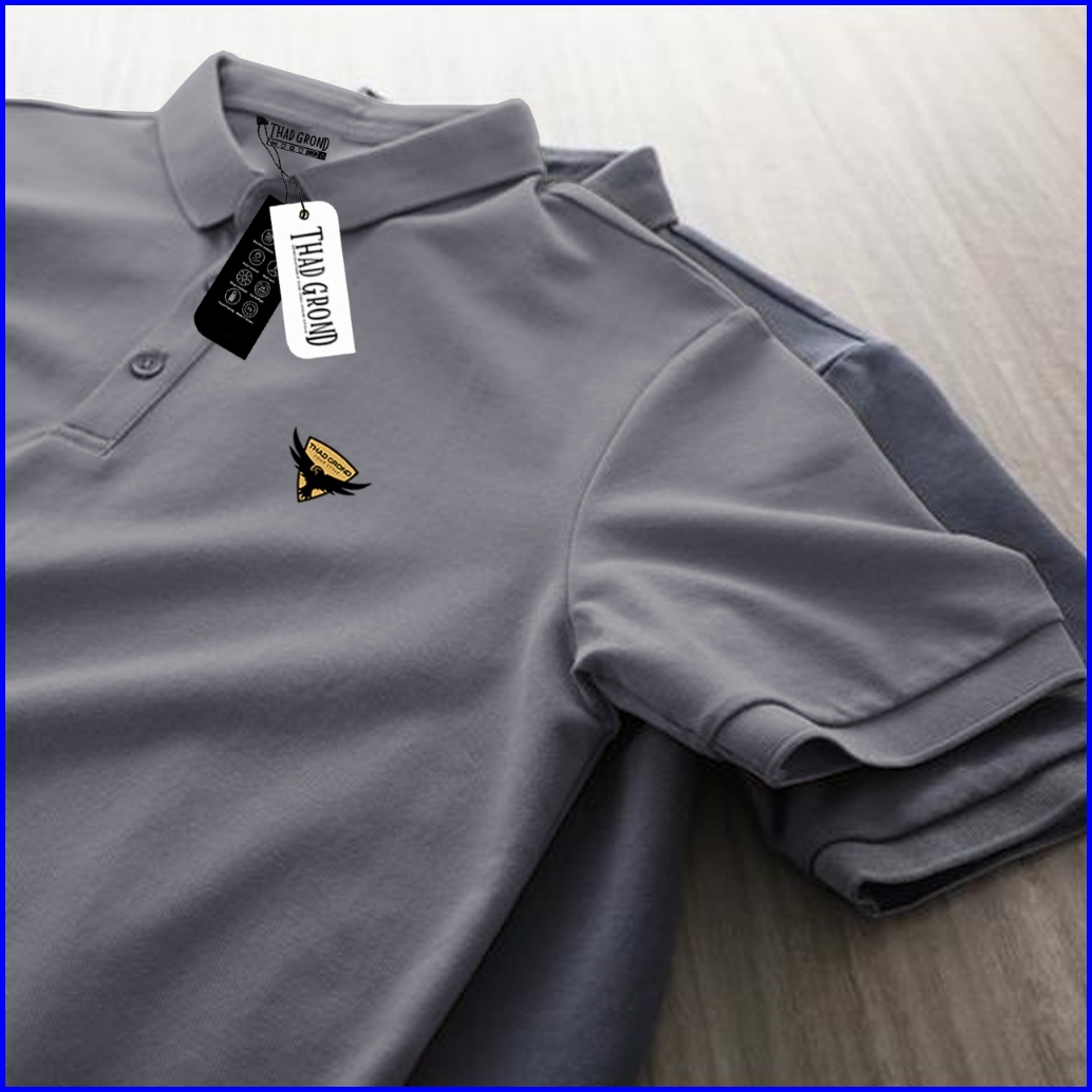 Thad Grond - Polo Shirt Pria Logo Perisai Burung Pdf Baju Kerah Baju Santai Cotton100 Original