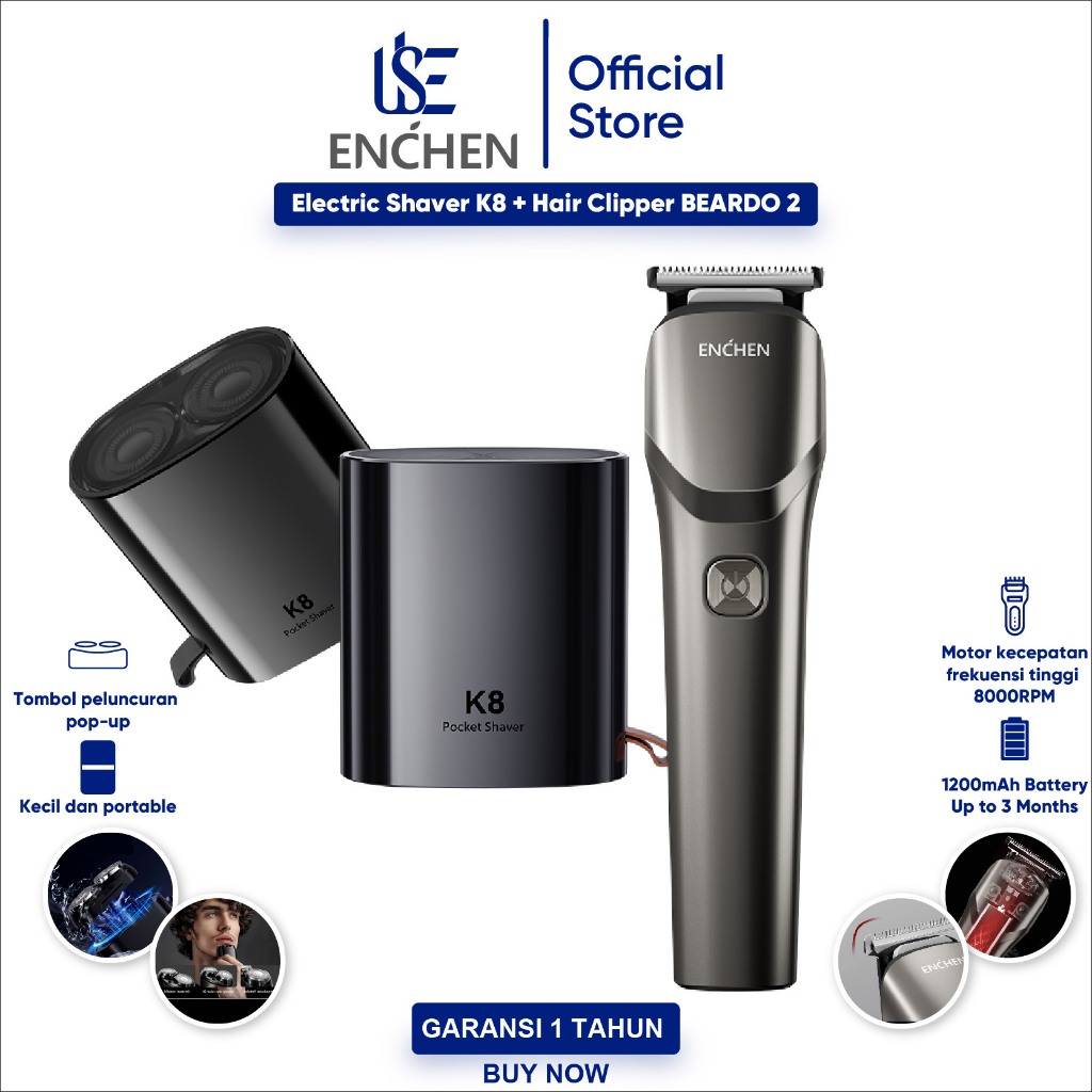 【Penawaran Kombo】ENCHEN Beardo 2 + K8 Pop-up Alat Cukur Elektrik Smart Trimmer Electric Shaver Type-C 5W 1200mAh Alat Cu