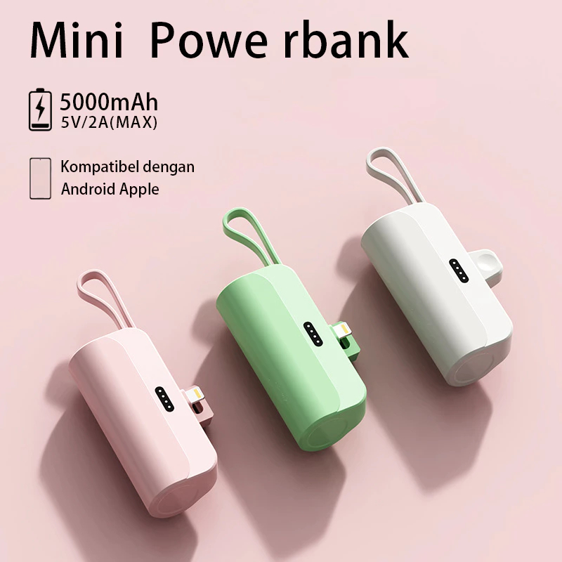 Portable 5000mAh Mini Powerbank 2 Conector Type-c IOS For iphone Android opo vi-vo Power Bank Best Seller Premium Murah