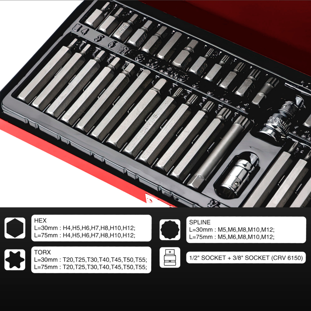 Kunci Shock Set Lengkap Mata Kunci Shock Mata Kunci L Bintang 10MM Bit Star Hex Spline Set 40PCS
