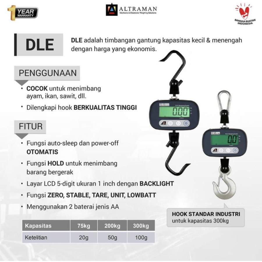 Timbangan Gantung Digital DLE Electronic Hanging Crane Scale 300Kg 200Kg 75Kg