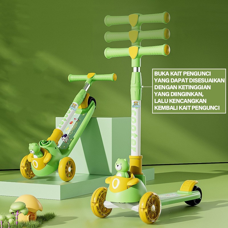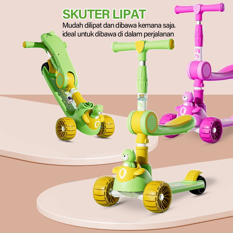 Cuddlee Skuter Mainan Anak Karakter Beruang 3 in 1 AFP0615 - Skuter Lipat Mainan Anak Karakter Beruang 3 in 1