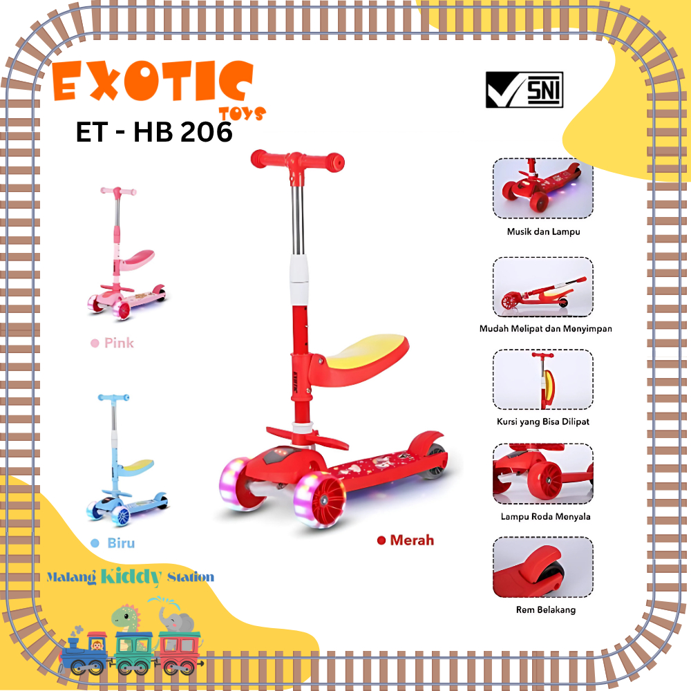 SKUTER EXOTIC MAINAN ANAK SCOOTER LIPAT LAMPU 2 E AMAN ET HB 206