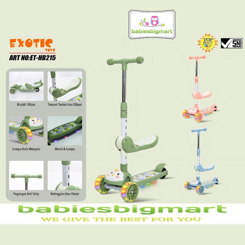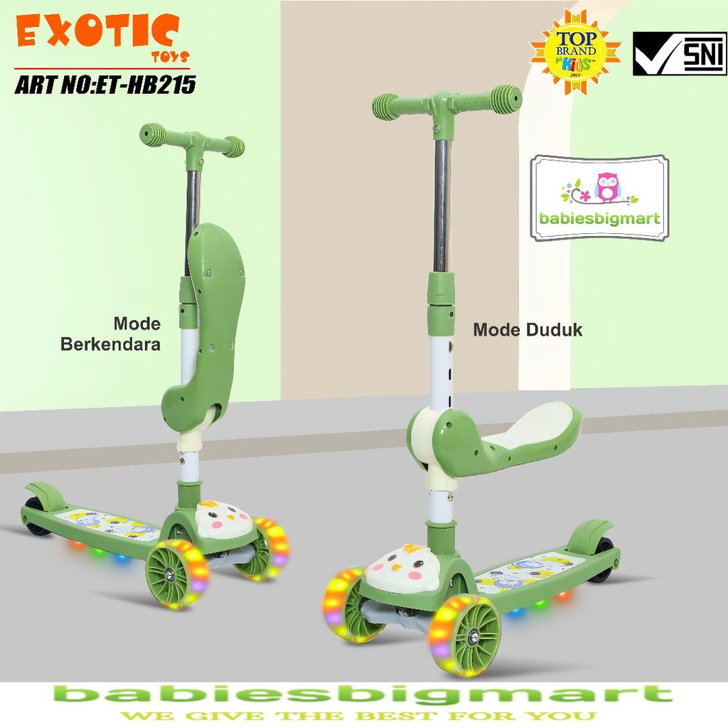 Scooter Mainan Anak EXOTIC ET HB 215 Bisa Duduk Berdiri Musik Lampu Scooter Lipat Skuter Sekuter