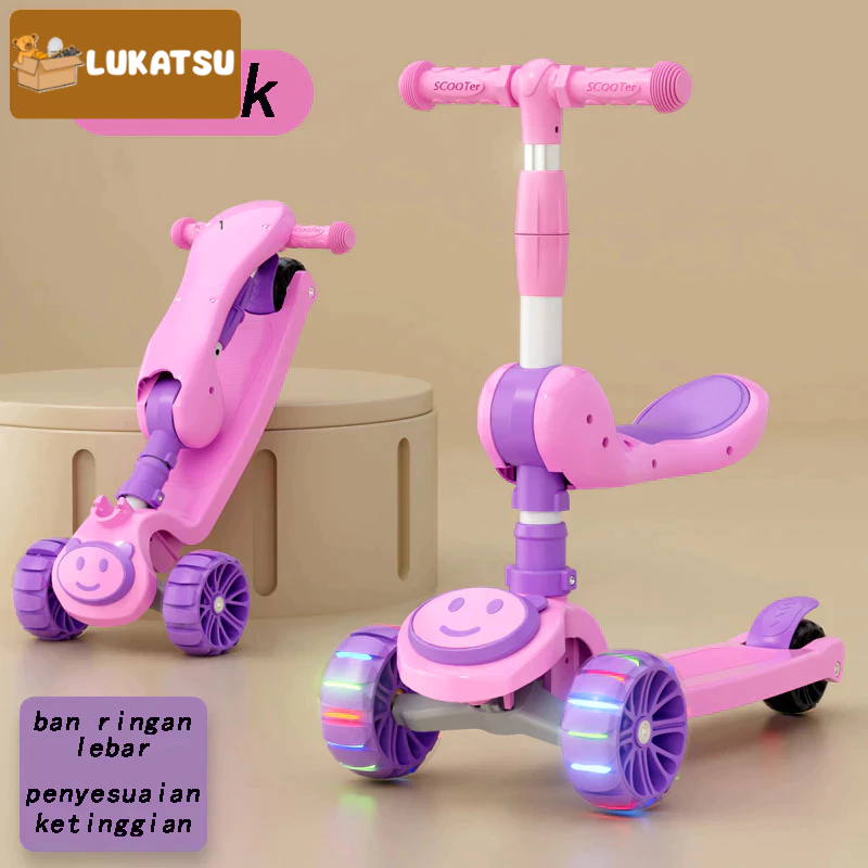 Mainan Skuter 2in1 Mainan Scooter Anak Roda 3 dengan Dudukan + Lampu Pada Roda 2-12Tahun