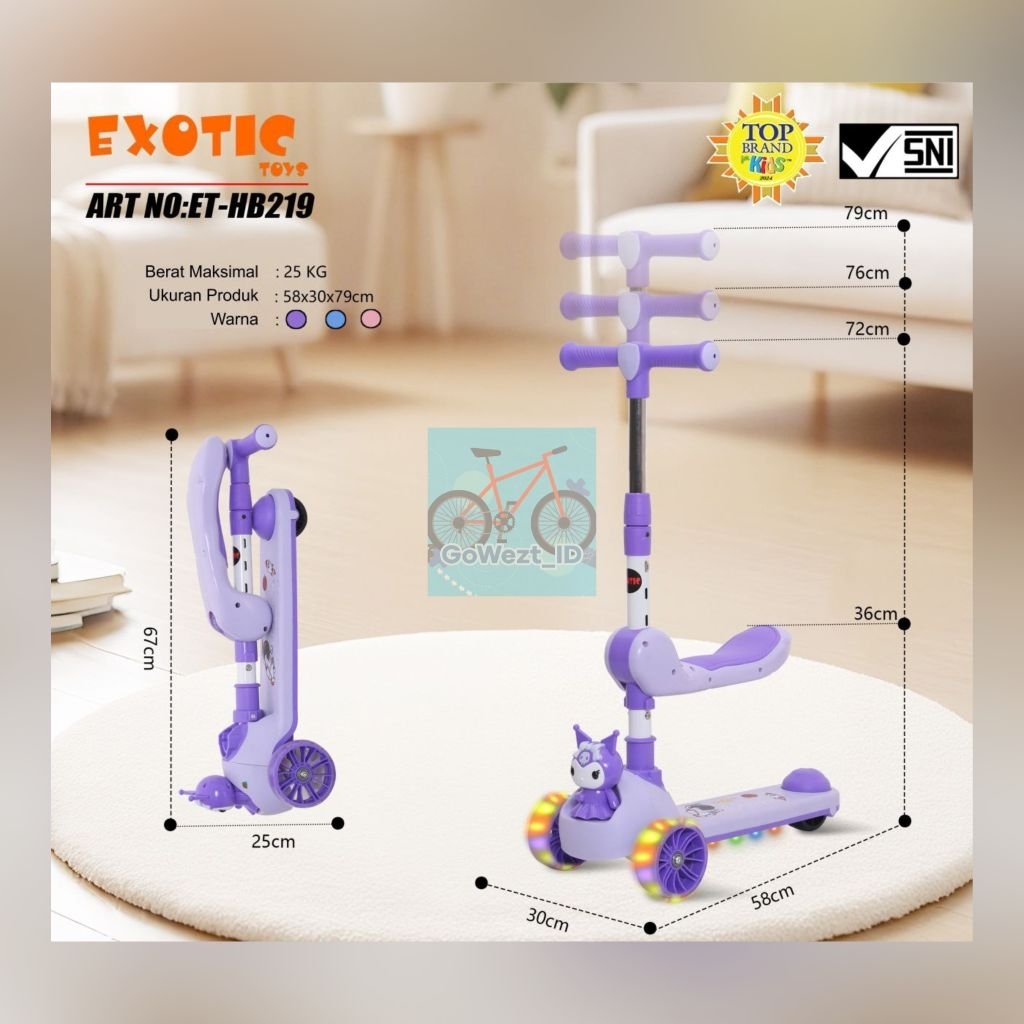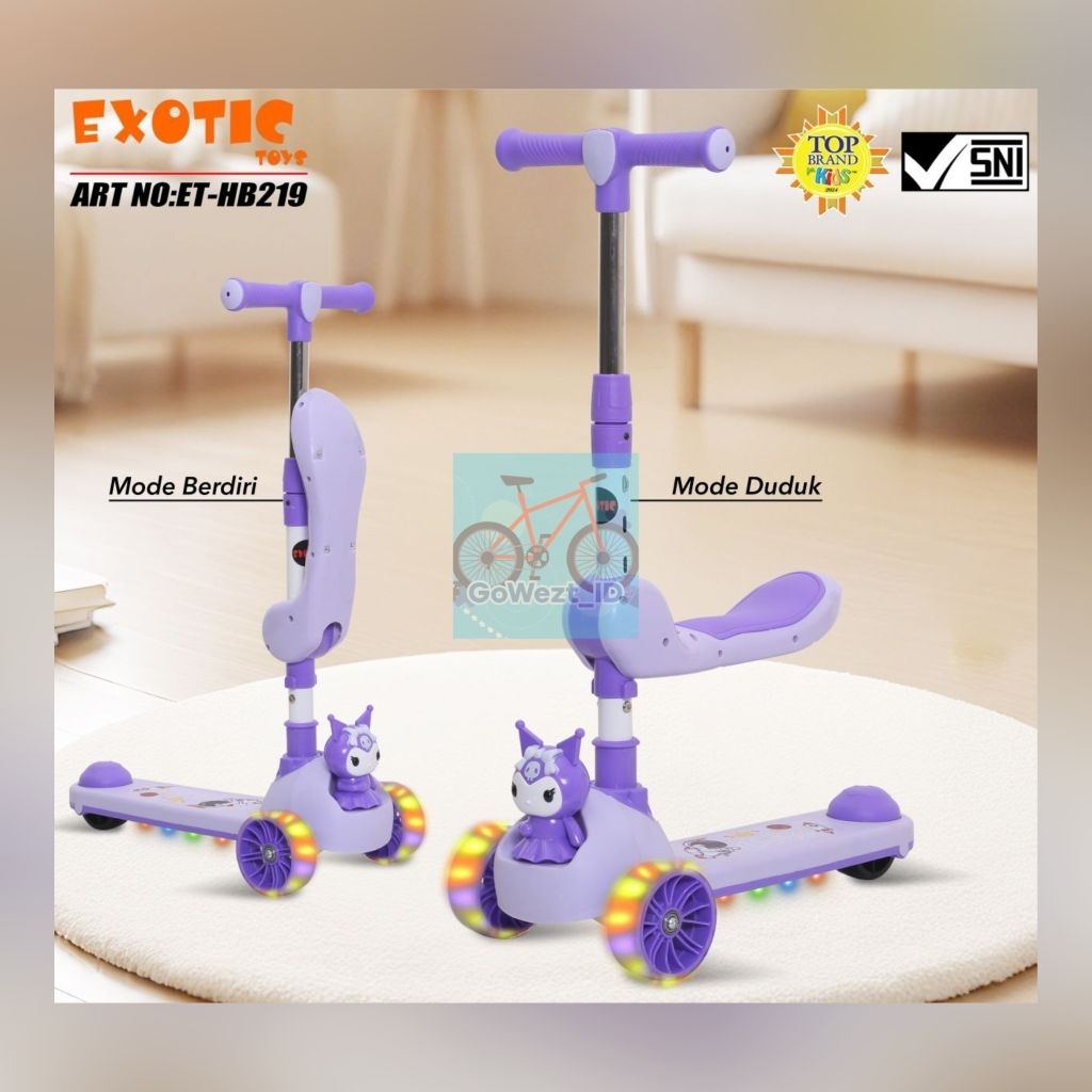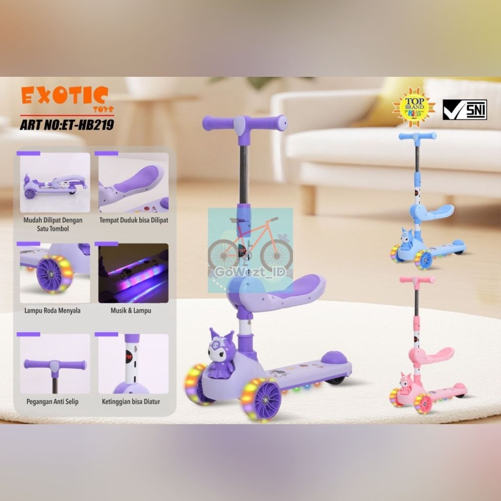Scooter Skuter Otoprd Anak HB 219 Exotic Motif Kuromi Bangku Duduk Lipat Lampu Musik | High Quality