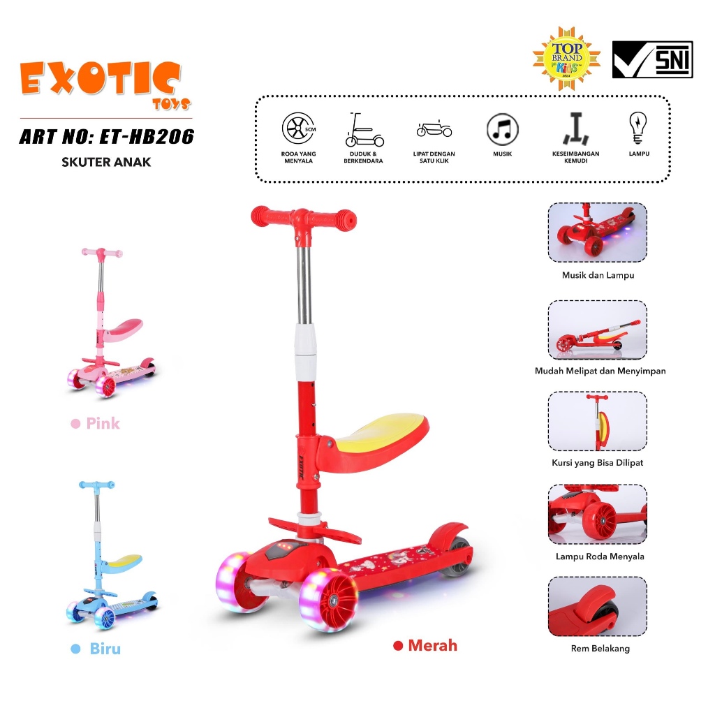 Scooter Mainan Anak Marmut Love 2 in 1 Skuter Lipat Duduk Roda Tiga Lampu Musik Edukasi Toys HB206