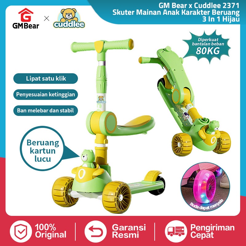 GM Bear x Cuddlee Skuter Mainan Anak Karakter Beruang 3 in 1 P0615 - Skuter Lipat Mainan Anak Karakter Beruang 3 in 1