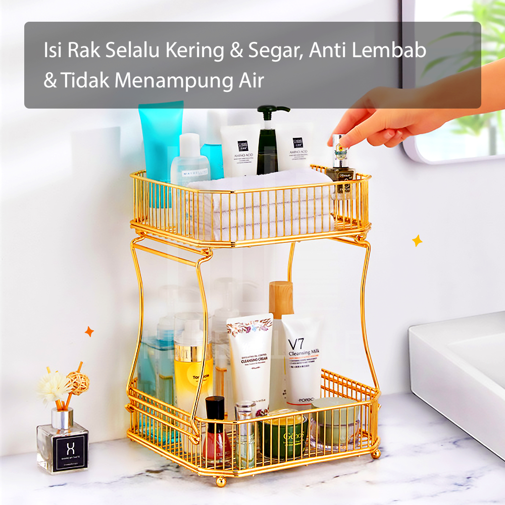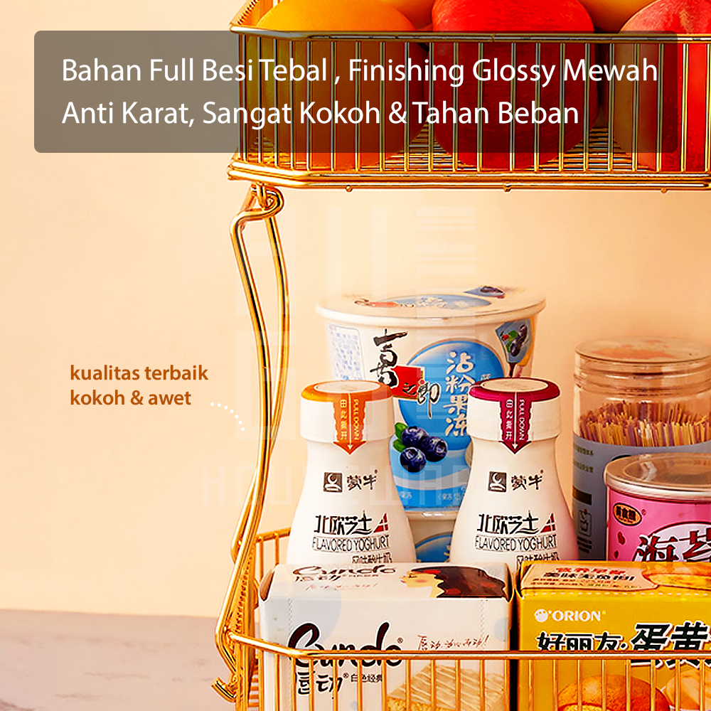 HUGO Rak Toples Rak Dapur Besi Tray Buah Tempat Buah Wadah Saji Buah Mewah Keranjang Serbaguna 2 Tingkat goId Premium