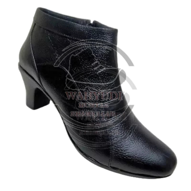 Sepatu Boot Wanita Kulit Asli Hak 7cm - Hitam Elegan PDH Formal | Boot Kerja, Security Nyaman Awet