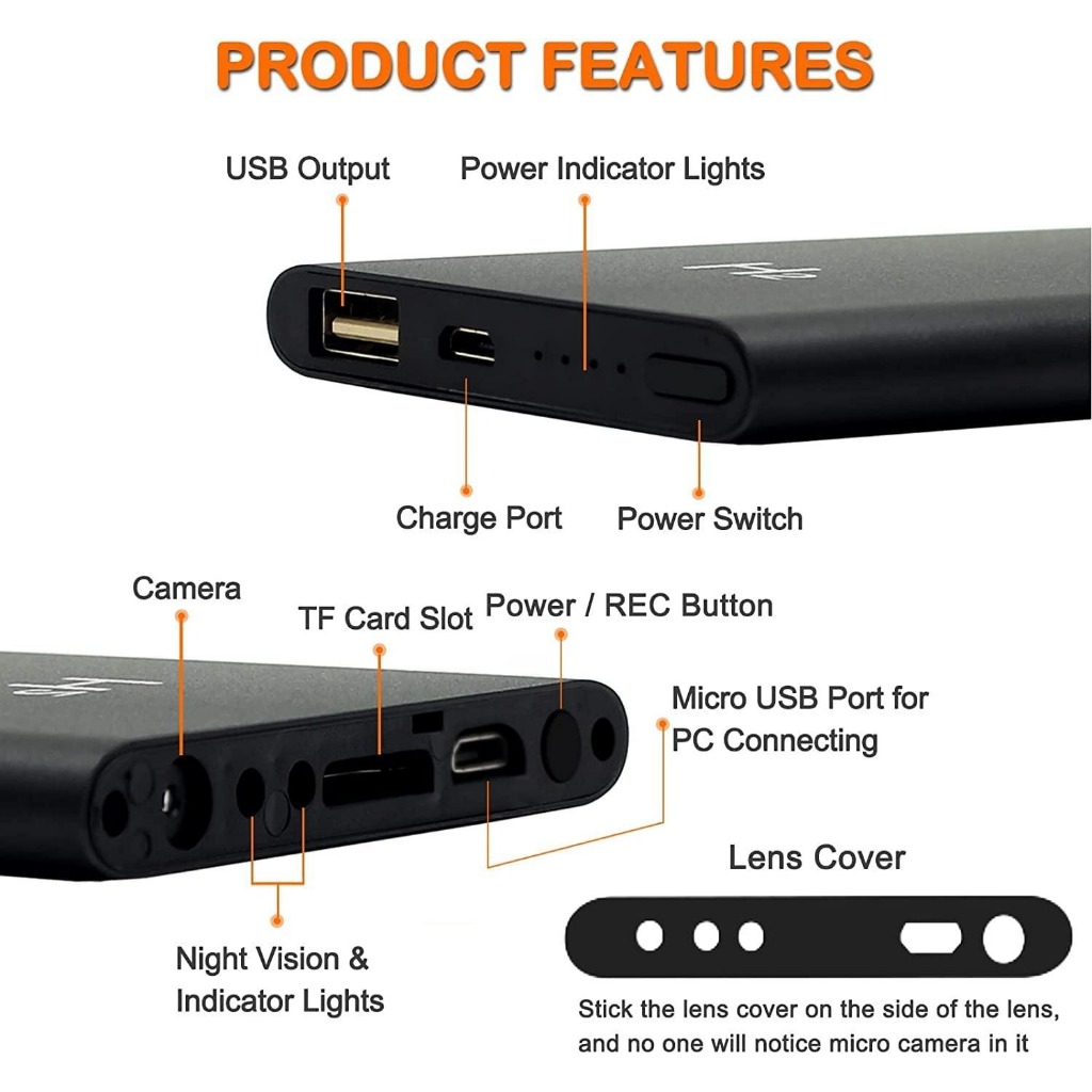 AlfatihJaya Power Bank Kamera 1080P H2 Hidden Camera Tersembunyi PWR-H2 5000MAH No WiFi Powerbank