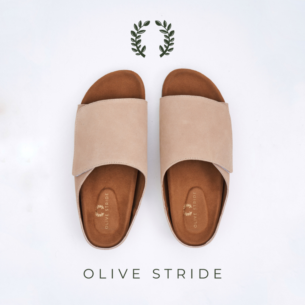 Olive Stride - Issa Slippers in Tan Sandal Kasual Pria Cokelat