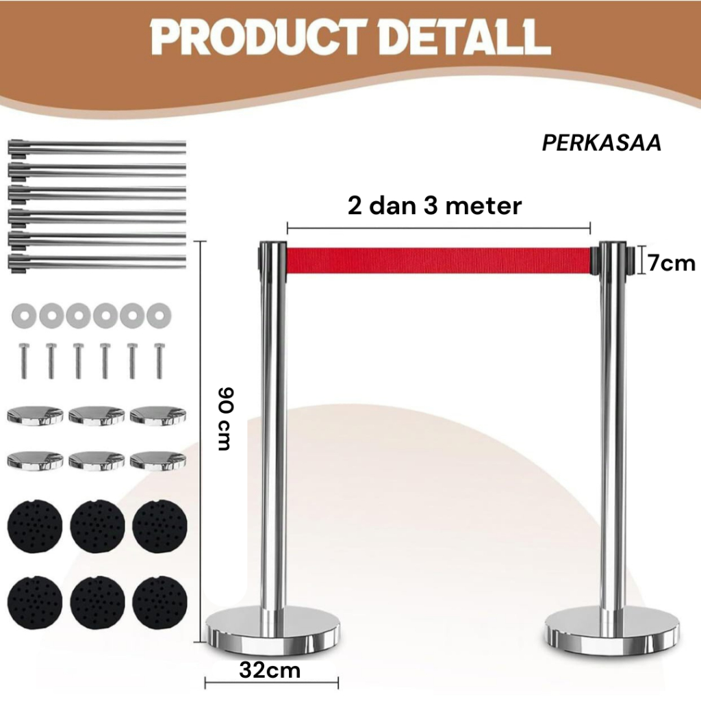 Standing Barrier Queue Line / Tiang Antrian Stainless Penghalang Jalan / Tiang Pembatas Jalan
