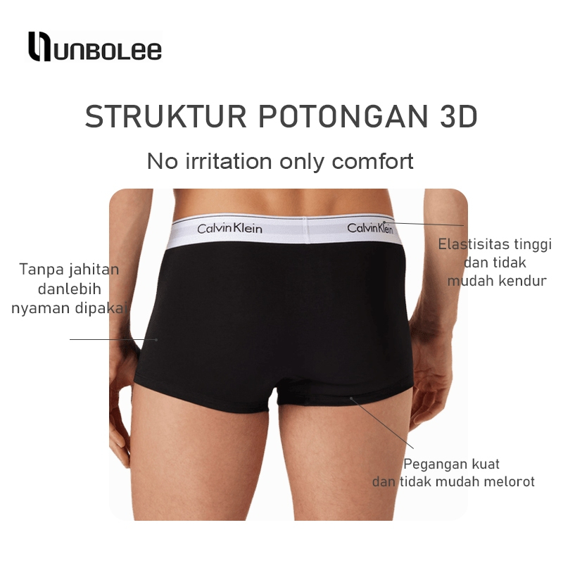 UNBOLEE 3Pack Calvin Klein Cotton Stretch Underwear Low Boxer Pria Celana Dalam