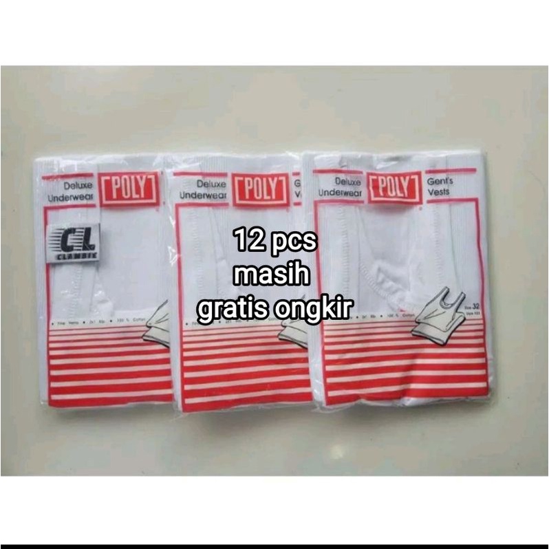 6 pcs singlet pria dewasa poly putih original paket hemat singlet poly