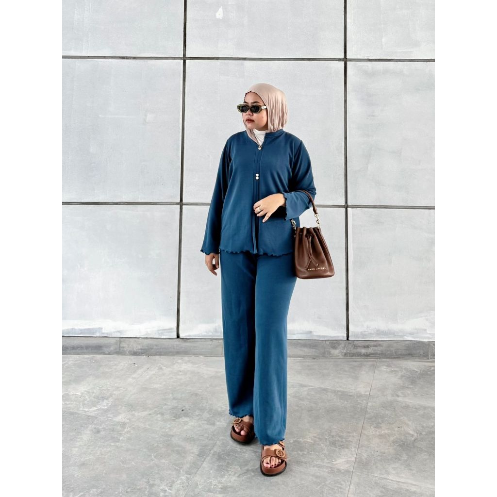 Denacollection Mazaya Setelan Celana Kulot Baju Panjang Bahan Knit Japan Casual Santai Wanita