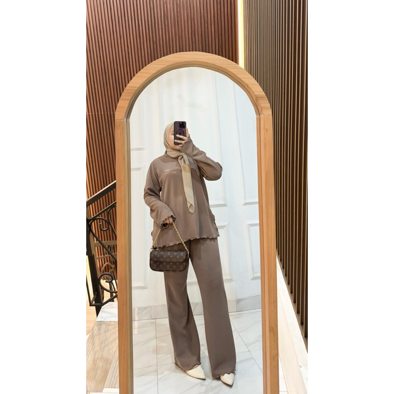 Denacollection Setelan Fuji Celana Cutbray Bahan Knit Japan Premium Casual Santai Celana Dewasa Baju Panjang Nyaman