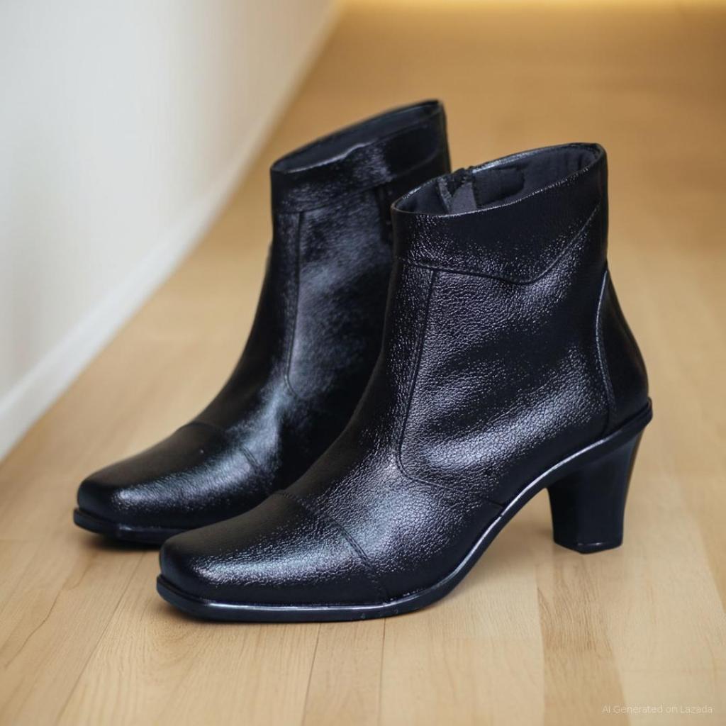 Lika Bianca - Sepatu Pantofel Heels 7 Cm Wanita Kulit Hitam Kerja Formal Resmi Dinas Guru Pdh