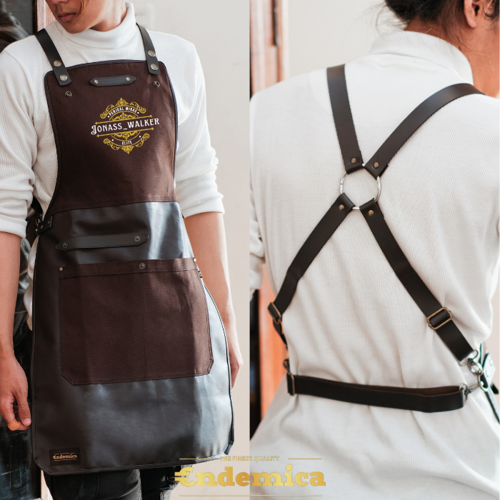 apron barista celemek barbershop celemek koki masak kombinasi kanvas tebal dan premium syntethic leather