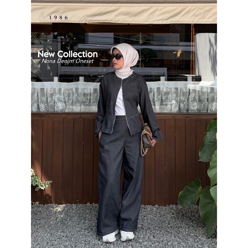 Nona Denim Oneset - Oneset Denim - Oneset Jeans - Zipper Oneset - Zipper Oneset Denim - Set Denim - Set Jeans - Oneset D