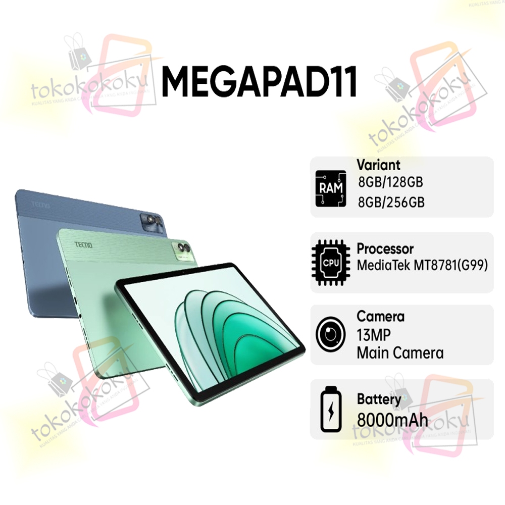 Tecno Megapad 11 Wifi+LTE ( SimCard Jaringan) Tablet Mega Pad MediaTek Helio G99 | Tab 11" 90Hz FHD+ | Tablet Layar 11 inch - Garansi Resmi