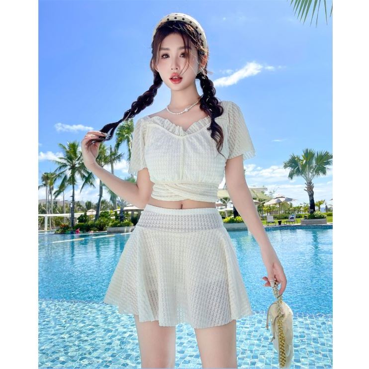 Katata Bikini 2pc Premium Swimsuit Set Baju Renang Crop Top + Celana Rok Wanita Import BK96