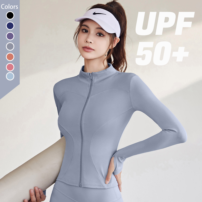Youku Jaket Olahraga Wanita Lengan Panjang baju olahraga wanita baju gym wanita Jaket Anti UV UPF50+ Untuk Yoga/Fitness