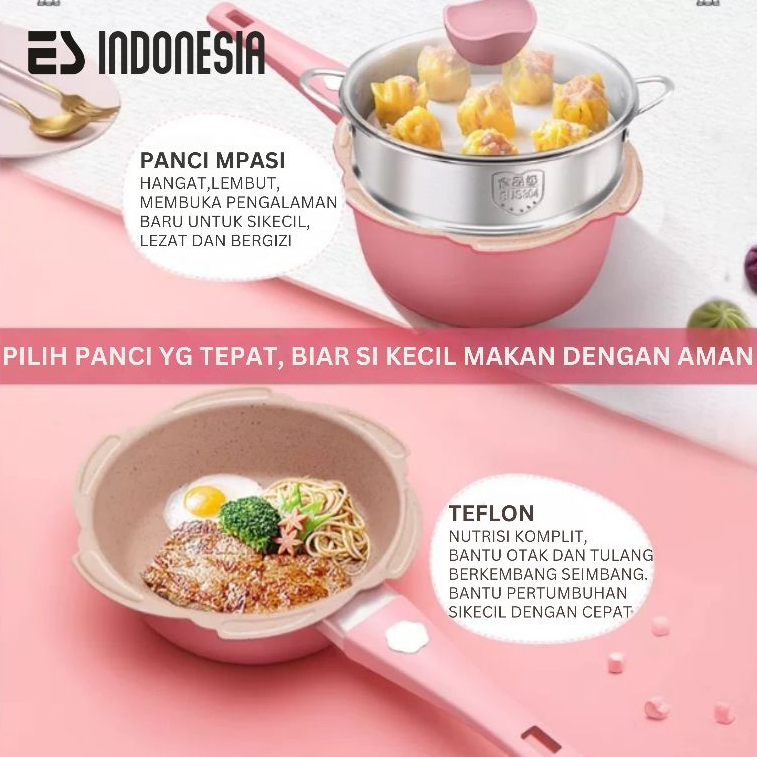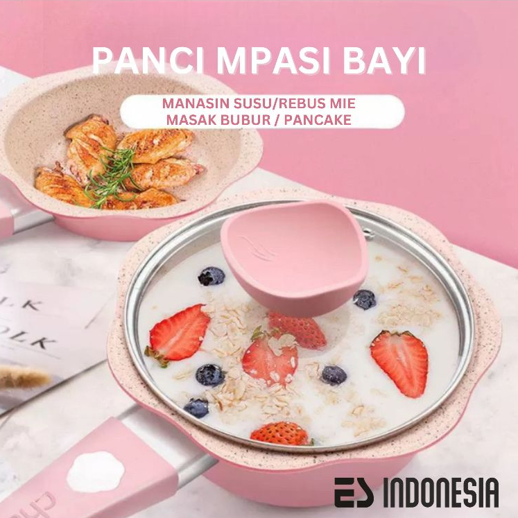 ESINDO Panci MPASI Full Set 16cm - Peralatan Panci Bayi Granite Die Cast (Kuat) Anti Lengket