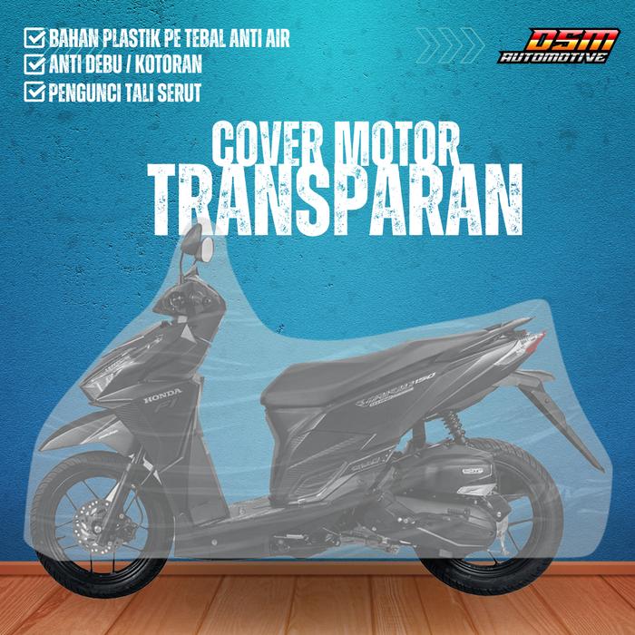 [Star]Cover Motor Plastik Transparan Tahan Air Debu Dan Kotoran Bahan Plastik Tebal Motorcycle - S, Bening / Putih